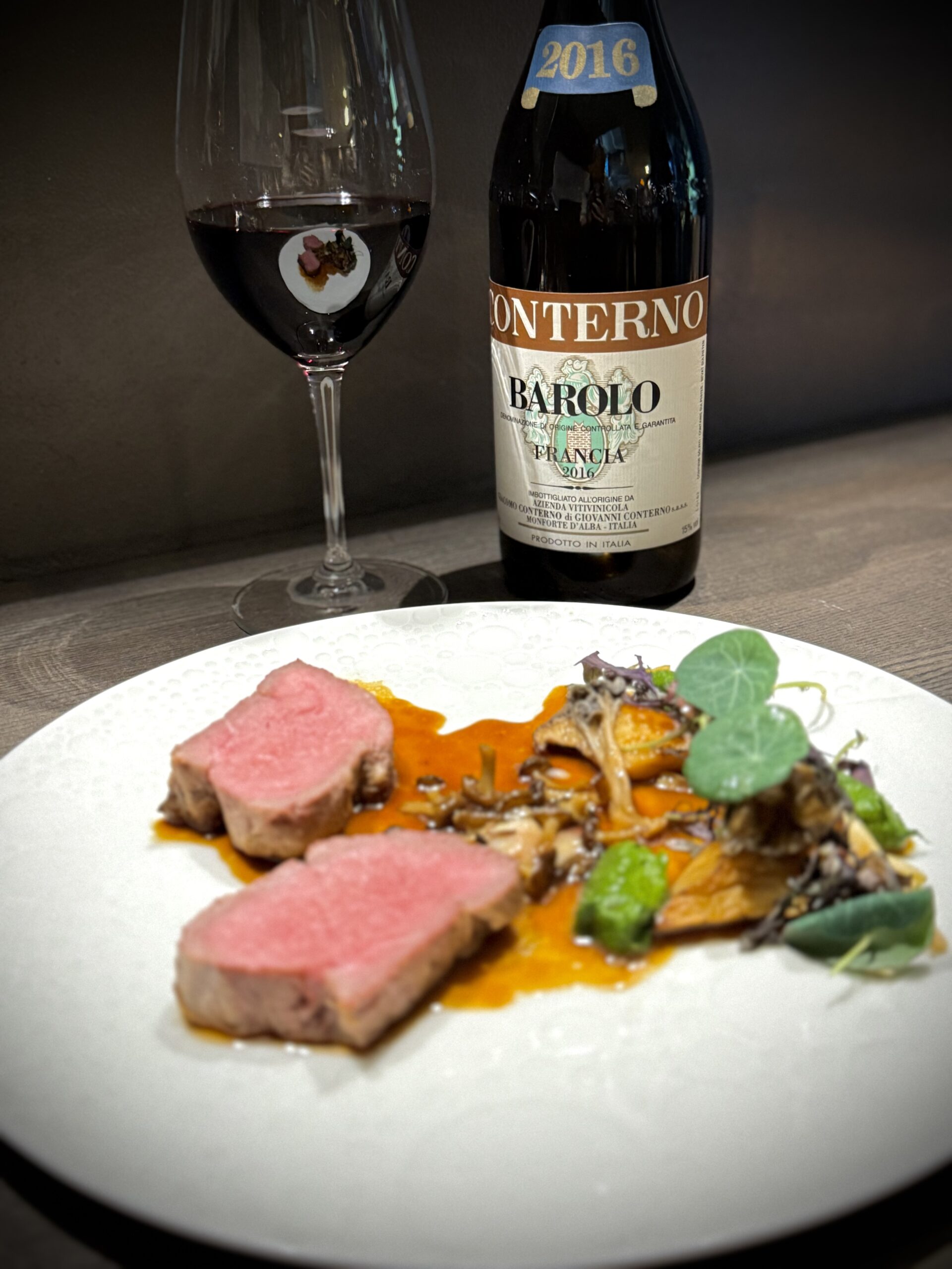 – Kalvemørbrad, kejserhatte, trompethatte, peber, pommes anna, sauce bordelaise med røget marv